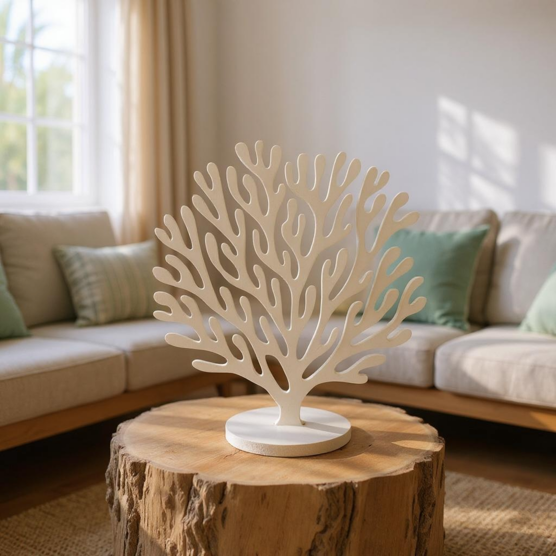 Ses ramifications douces et organiques s'étendent avec équilibre, comme une carte invisible de la respiration du monde marin. CORALLIA capte la lumière et la redistribue en ombres vivantes, presque méditatives.