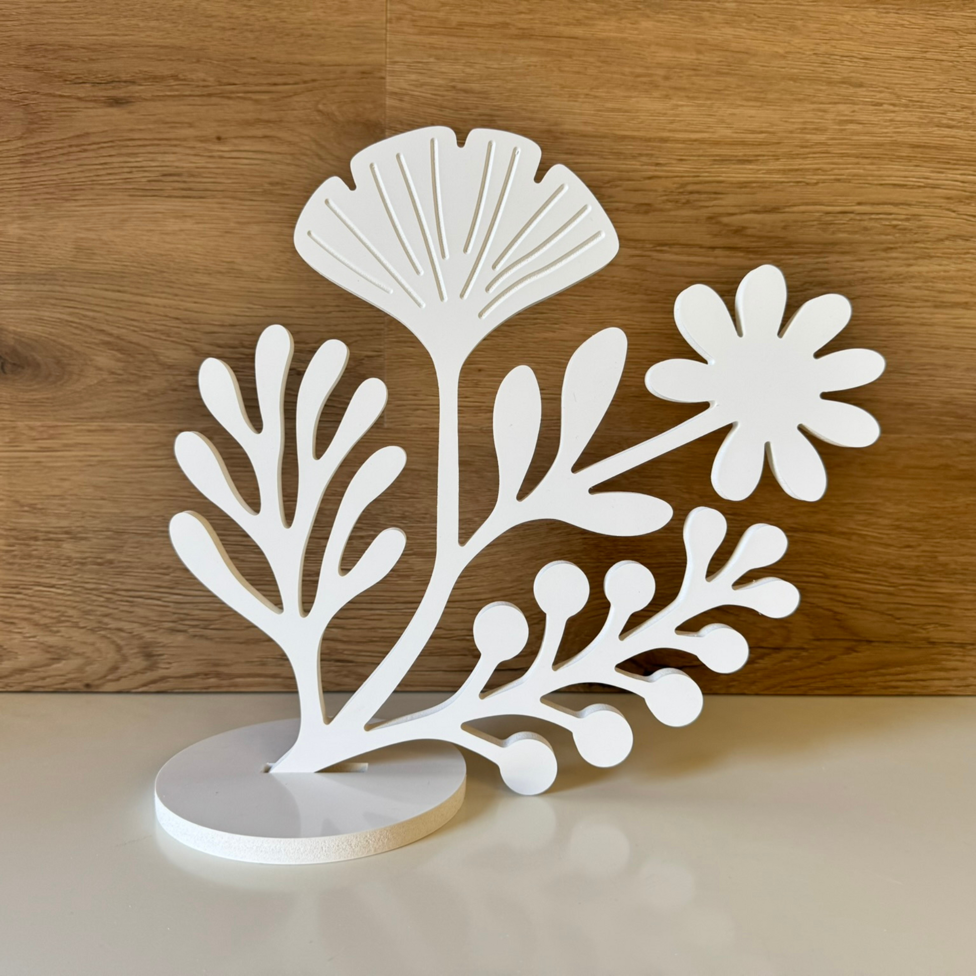 Une silhouette végétale stylisée, capturée dans un instant de grâce. Inspirée des jardins oubliés, des herbiers anciens et de l'élégance discrète des plantes médicinales, cette création évoque une flore réinventée – libre, joyeuse, stylisée.