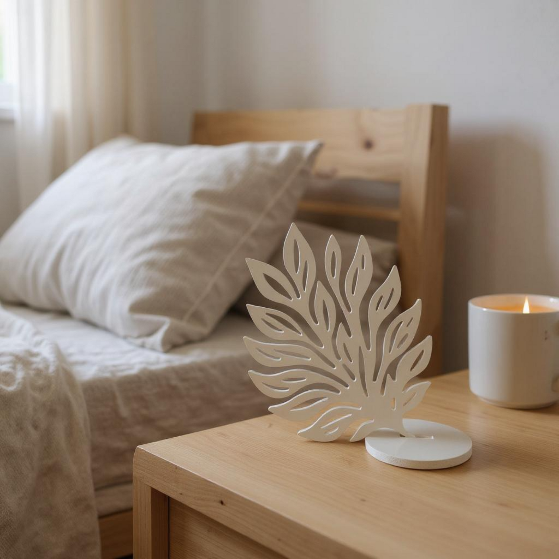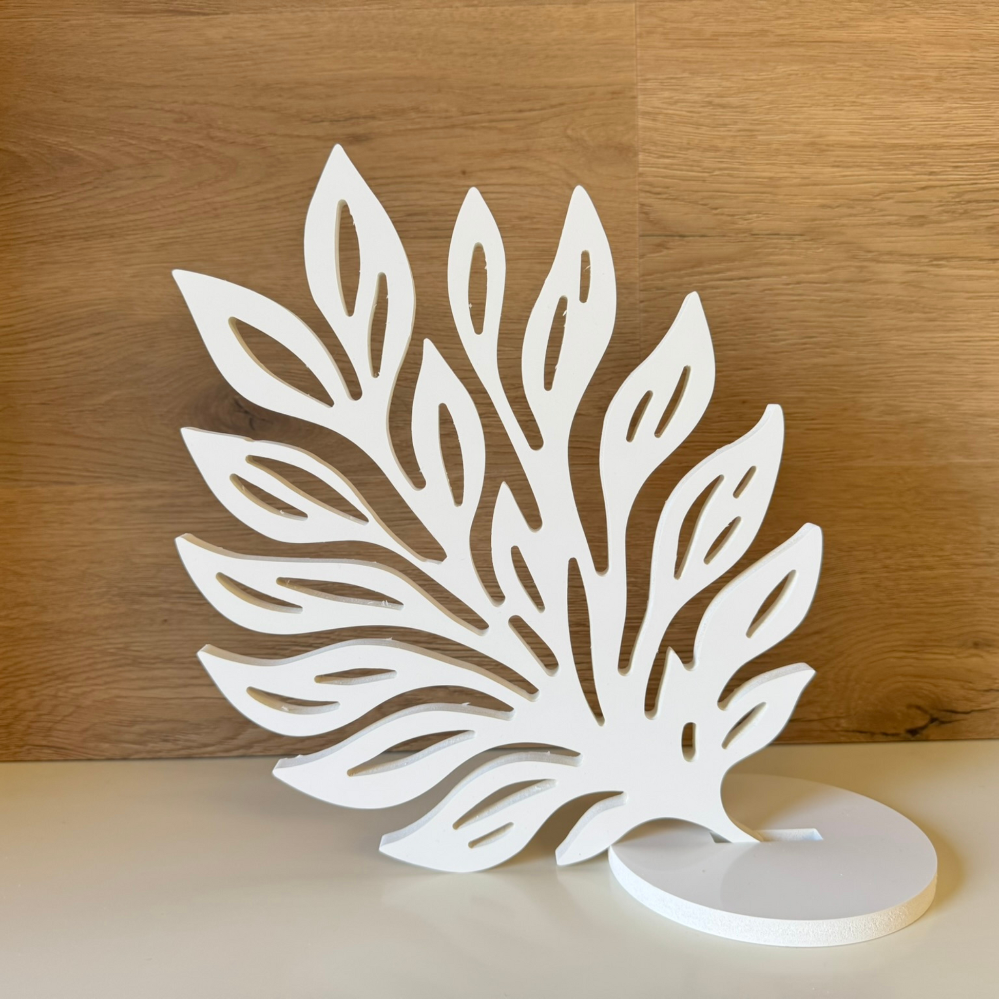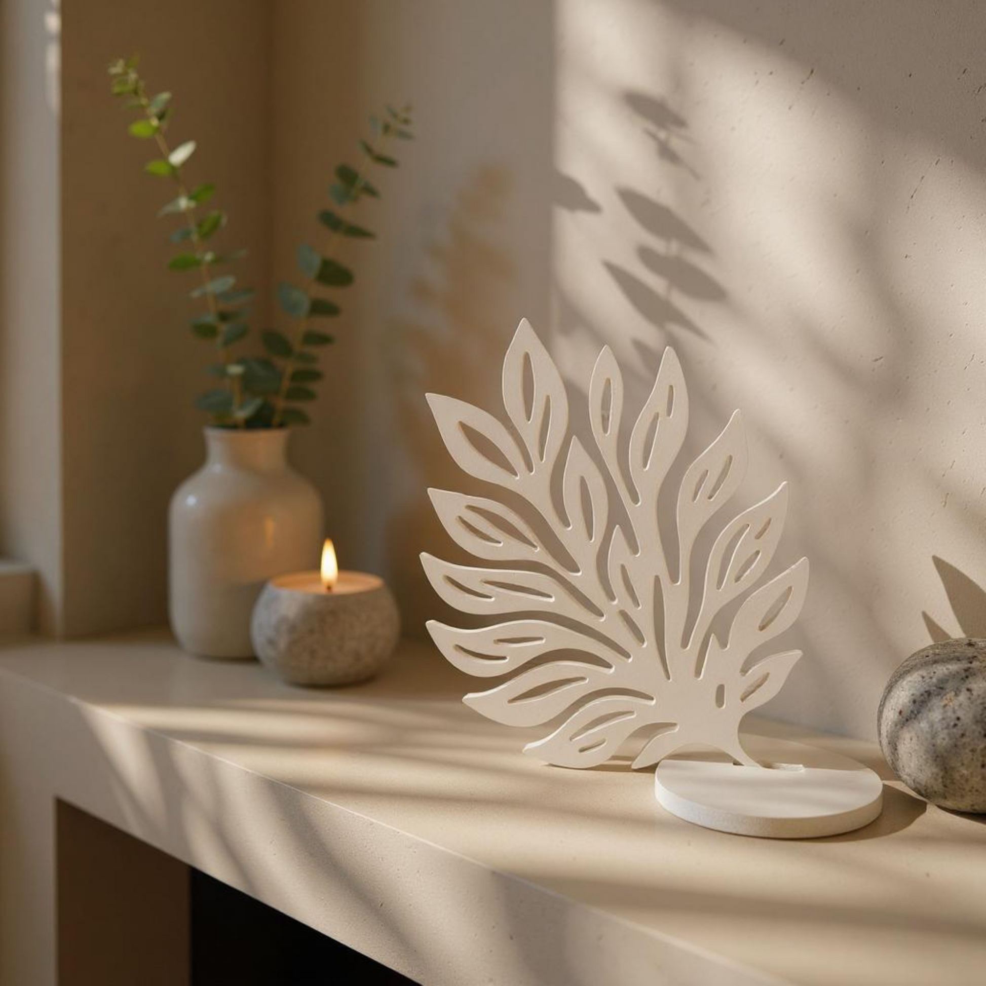 Explore une autre pulsation du vivant : celle du mouvement, de l’élan, de la vitalité. Inspirée des formes à la fois végétales et minérales, cette feuille sculptée évoque une flamme calme, une palme stylisée ou un feuillage dansant au vent. Elle semble vibrer, onduler, comme saisie entre deux souffles.