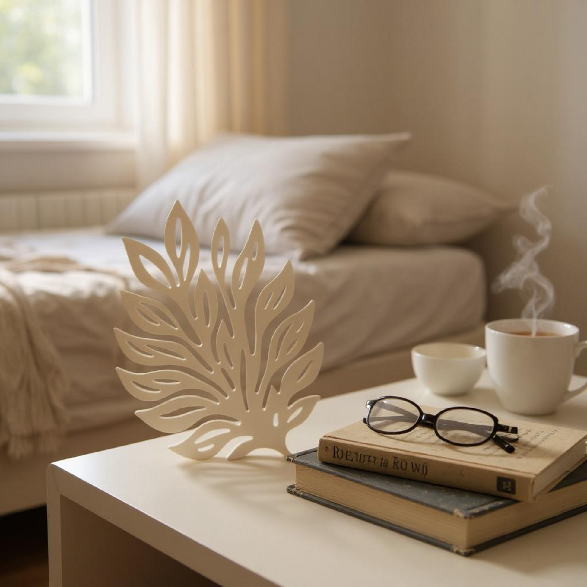 Son tracé finement ajouré joue avec la lumière, projetant des ombres vivantes, élégantes, presque méditatives.