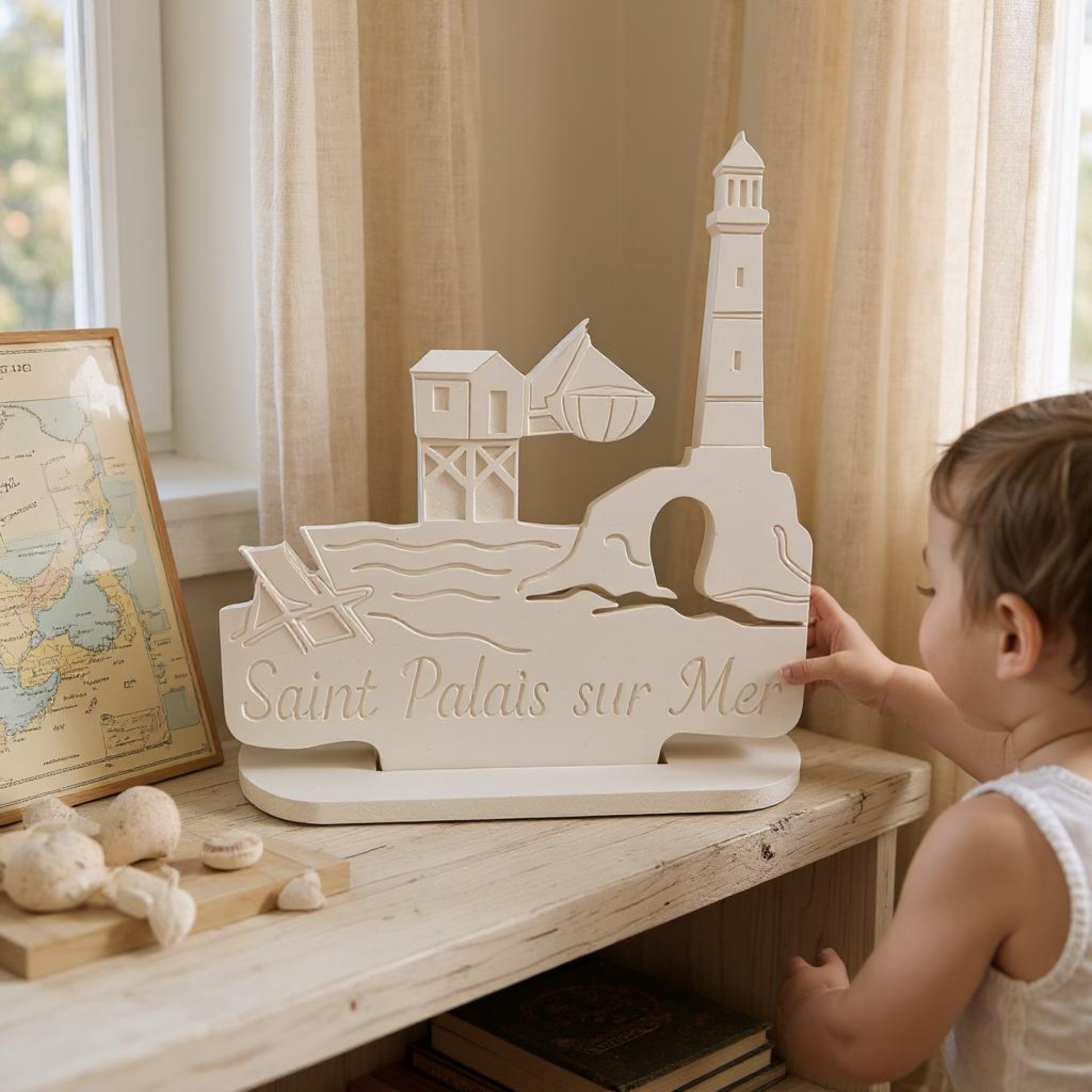Parfaite sur une étagère, une commode ou une table d'entrée, cette pièce au design épuré est une ode à l'enfance, aux vacances en bord de mer, et au patrimoine local . Une décoration douce, évocatrice et durable.
